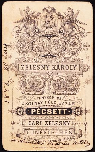 | Keywords: Király utca 1., Zsolnay féle - Fortepan 81426.jpg Check categories 2016 August 28 hu Király utca 1 Zsolnay féle Bazár Zelesny Károly fényképész Location Hungary Tags verso photographer studio Title Király utca 1 Zsolnay féle \ http //www fortepan hu/_photo/download/fortepan_81426 jpg 1900 Fortepan 81426 http //www fortepan hu/_photo/download/fortepan_81426 jpg http //www fortepan hu/ lang en img 81426 Unknown The release at fortepan hu is CC-BY-SA-3 0 As the photographer is unknown or pseudonymous and the photograph is Age 1900 01 01 years old it is considered public domain both in the country of publication Hungary and the USA where Wikimedia Commons is hosted See Fortepan HU for more information on related uploads PD-anon-70-EU PD-1923 PD-1923 DEFAULTSORT Fortepan 081426 1900 photographs Images uploaded by Fæ |