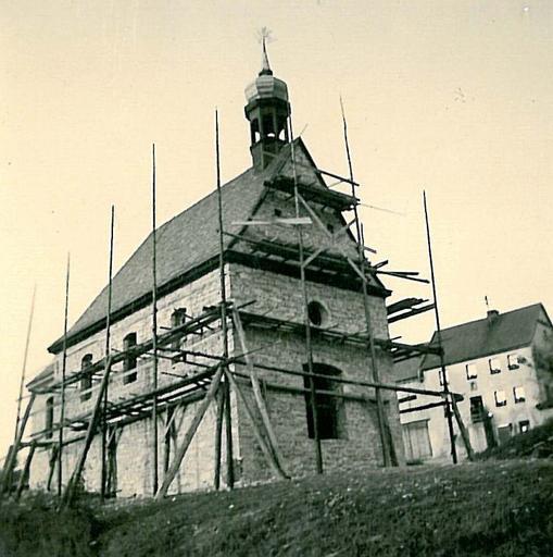 Keywords: Kirche Laibaroes 1949.jpg historic view of Laibarös part of the municipality of Königsfeld own possession 1949 uploaded by --Immanuel Giel 14 44 4 June 2007 UTC Kapelle Sancta Maria Regina Pacis Laibarös Scaffolding in Germany
