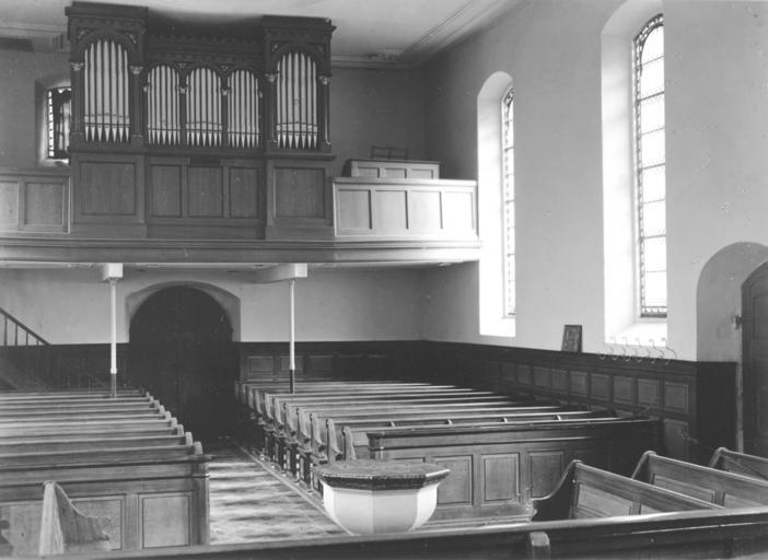 Keywords: Kirche Luchsingen innen vor 1958.jpg en Interior of Reformed Church in Luchsingen GL Switzerland before 1958 Archiv Kirchgemeinde Grosstal Author < 1958 Reformierte Kirche Luchsingen Pipe organs in the canton of Glarus