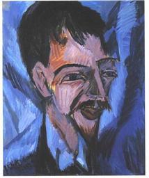 Keywords: Kirchner - Bildnis Dr Alfred Döblin.jpg en Portrait of Alfred Döblin oil on canvas 20 x 16 1/4 in 50 8 x 41 3 cm Courtesy of the Busch-Reisinger Museum Harvard University Art Museums Association Fund de Bildnis Dr Alfred Döblin repro from art book 1912 Creator Ernst Ludwig Kirchner Author died more than 70 years ago - public domain PD-old Paintings by Ernst Ludwig Kirchner Alfred Döblin Portrait paintings of men at bust length Busch-Reisinger Museum 1910s portrait paintings 1912 paintings |