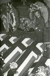 Keywords: kirkelige tjenester kirkeligetjenester vårslipp 2012 vårslipp2012 nordmenn i sverige under krigen nordmennisverigeunderkrigen 1942 andre verdenskrig andreverdenskrig 2. verdenskrig 2verdenskrig outdoor Et engelsk kurerfly som gikk opp fra Bromma flyplass ved Stockholm om kvelden den 28. august 1944 styrtet i tett tåke mot bakken ved det 305 meter høye Kinnekulle-området i Värmland nær norskegrensen. Av de 15 ombordværende ble 11 nordmenn drept. De øvrige fire braktes til lasarettet i Lidköping. – Flyet fulgte den vanlige rute til England men måtte snu over Vänern-området og returnerte til Bromma. Her var været så dårlig at flyet ble dirigert mot Göteborg. Underveis dit kom flyet ut av kurs, styrtet ned og brente opp. Bisettelsen av ofrene fant sted i Lidköping mandag 4. september 1944.Bildet er hentet fra minnehøytideligheten i Lidköping kirke. Flyattache major Gundersen taler ved kransenedleggingen. RA/PA-1209/Uc/67/1/S 5215 Et engelsk kurerfly som gikk opp fra Bromma flyplass ved Stockholm om kvelden den 28. august 1944 styrtet i tett tåke mot bakken ved det 305 meter høye Kinnekulle-området i Värmland nær norskegrensen. Av de 15 ombordværende ble 11 nordmenn drept. De øvrige fire braktes til lasarettet i Lidköping. – Flyet fulgte den vanlige rute til England men måtte snu over Vänern-området og returnerte til Bromma. Her var været så dårlig at flyet ble dirigert mot Göteborg. Underveis dit kom flyet ut av kurs, styrtet ned og brente opp. Bisettelsen av ofrene fant sted i Lidköping mandag 4. september 1944.Bildet er hentet fra minnehøytideligheten i Lidköping kirke. Flyattache major Gundersen taler ved kransenedleggingen. RA/PA-1209/Uc/67/1/S 5215 |