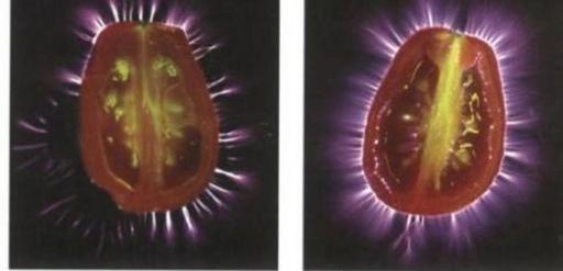 Keywords: Kirlian-pomodori.jpg it Fotografia Kirlian di un pomodoro prima e dopo la cottura Eating for Beauty David Wolfie 2003-02-04 Kirlian photography