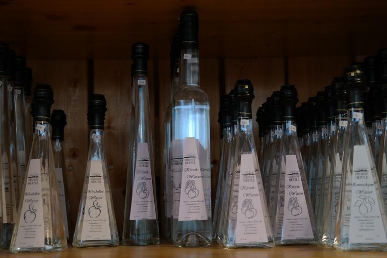Keywords: kirsch brandy bottles alcohol fruit spirit