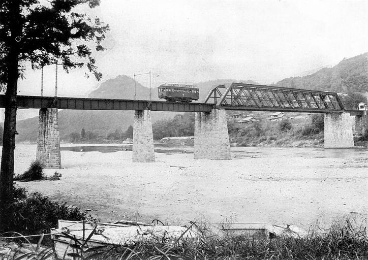 Keywords: Kisogawa Bridge of Kitaena Railway.jpg en Kisogawa Bridge of Kitaena Railway 北恵那鉄道 曽 橋梁 大同電力株式会社沿 史 大同電力 1941年 Author date before 1941 PD-Japan-oldphoto Bridges over the Kiso River Nakatsugawa Gifu Kitaena Tetsudo Railway bridges in Gifu prefecture |