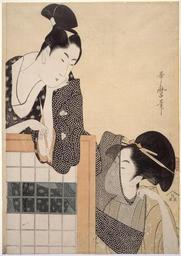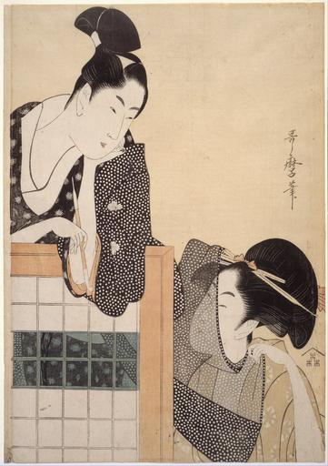 Keywords: Kitagawa Utamaro I, published by Moriya Jihei - Couple with a Standing Screen - Google Art Project.jpg 1806 1806 Kitagawa Male 565009 Utamaro I Japanese 1806 /collection/museum-of-fine-arts-boston/artwork/couple-with-a-standing-screen-kitagawa-utamaro-i-published-by-moriya-jihei/534321/ Kitagawa Utamaro I published by Moriya Jihei Artist /artist/utamaro-kitagawa/4129043/ 4129043 /collection/museum-of-fine-arts-boston/ Museum of Fine Arts Boston 509114 http //www mfa org/ 12/17/2011 11 00 22 AM /collection/museum-of-fine-arts-boston/artwork/couple-with-a-standing-screen-kitagawa-utamaro-i-published-by-moriya-jihei/534321/ 1797 about 1797 Kansei 9 Edo period Woodblock print nishiki-e ; ink and color on paper 372 534321 False 1797 about 1797 Kansei 9 3/24/2012 3 09 44 AM 18 308 http //www mfa org/collections/object/couple-with-a-standing-screen-155952 Gift of Captain John C Phillips Museum of Fine Arts Boston All Rights Reserved print 1790 1800 w260 x h372 mm about 1797 Kansei 9 False 0 705078125 Object couple-with-a-standing-screen-kitagawa-utamaro-i-published-by-moriya-jihei Couple with a Standing Screen c 260 Woodblock print nishiki-e ; ink and color on paper Period _era _dynasty _reign Edo period special url_id -AHNNUOZDoC3aw PD-old-100-1923 1806 Google Art Project works by Kitagawa Utamaro Art of Japan in the Museum of Fine Arts Boston People with kiseru in art |