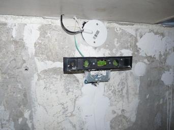 Keywords: Kitchen air extractor start to wiring.JPG en Connecting kitchen air extractor to electricity in apartment block What problem was there - the socket was installed too close to the furniture and I can't make any cable connection to it How I solved that problem I put out the socket from a hole and put there round juncion box with diameter 65mm That way I made reservation for connecting air extractor and furniture backlight But for washing machine I put external double-socket 15cm below it's old place As you can see on photo I choose 90-degree level for external socket The same time junction box for air extractor and backlight is temporary covered to avoid getting dust inside Why external socket Cause for installing internal socket it's need to drill new hole with diameter 65 67mm but as wall is made of concrete it takes approximately 3 hours to make new hole for internal socket and lot of loud noise which may disturbs neighbours from nearest apartments For installing external socket it's need only 10 minutes and 4 small holes for screws own Dmitry G 2009-09-09 All steps of installing 1 After workers put tiles to the wall thumb left thumb <br clear all> 2 Now work is finished thumb left thumb Electrical wiring |