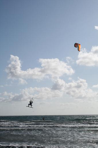 Keywords: kite surfing sea wind sport kitesurfer water summer sky kitesurfing water sports kiters wave kite drag in the air jump trend sports tenerife canary islands action active dynamic el medano