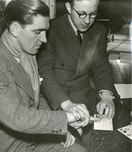 Keywords: kjesäter flyktningemottak vårslipp vårslipp 2012 vårslipp2012 andre verdenskrig andreverdenskrig 2. verdenskrig 2verdenskrig nordmenn i sverige under krigen nordmennisverigeunderkrigen For dem som utskrives til politiforlegningene blir det laget et ekstra identitetskort med fotografi og fingeravtrykk. Bildet viser hvordan fingeravtrykket settes på kortet. Stockholm 1.2.45.DUBLETT? RA/PA-1209/Uc/65/1-2/Uten nummer For dem som utskrives til politiforlegningene blir det laget et ekstra identitetskort med fotografi og fingeravtrykk. Bildet viser hvordan fingeravtrykket settes på kortet. Stockholm 1.2.45.DUBLETT? RA/PA-1209/Uc/65/1-2/Uten nummer |