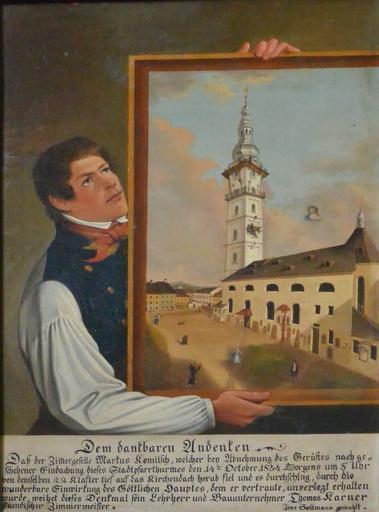 Keywords: Klagenfurt - St Egid - Votivbild.JPG Denkmalgeschütztes Objekt Österreich 49309 Klagenfurt Hauptstadtpfarrkirche Klagenfurt Votivbild für die wunderbare Rettung des Gesellen Markus Koinitsch 1834 Turmsturz own Raul de Chissota 2013-06-04 PD St Egid Klagenfurt Ex-voto-paintings in Carinthia |