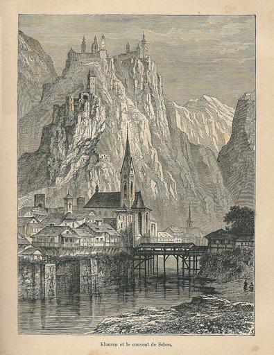 | Keywords: Klausen-XIXsiècle-29.jpg fr Klausen Tyrol Autriche aujourd'hui Chiusa Trentin-Haut-Adige Italie le couvent de Seben Sonnenberg - Gravure de la fin du XIXe siècle Maurice Grandjean - A travers les Alpes autrichiennes - A Mame -1893 Auteur inidentifiable before 1893 Historical images of Klausen Italy PD-old |