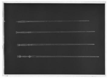 | Keywords: Klinga till domarsvärd-bödelssvärd, Vira bruk 1658, etsad dekor av David Kohl - Livrustkammaren - 34617-negative.tif David Casparsson Kohl depicted person Karl X Gustav av Sverige plain text Klinga rak bred flackslipad tvåeggad och med tvärt avskuren ytterände basen rak Tånge l ca 240 mm platt med rektangulärt tvärsnitt och avsmalnande mot övre änden Klingans båda sidor utmed hela sin längd med högetsad ornering <br/><br/>På den ena sidan ett liggande lejon inskription CAROLVS GVSTAVVS D G REX SVECORVM etc etc bröstbild av Karl X Gustav fas höger inom en stående oval lagerkrans krönt av en kunglig krona <br/>Tjugotre vapensköldar alla krönta av öppna kronor - nitton med landskapsvapen de fyra yttersta tomma nedanför samtliga sköldar landskapets namn Upland; Westgötha; Småland; Östgötha; Södermanland; Westmanland; Nerike Helsingland; Rügen; Cassuben; Stetin; Dalarna; Gestrica; Westrbottn; Ingermanland; Öland; Daal; Gothland; Wermeland; Skåne; Bleken; Halland; Jemptland <br/>Närmast ytteränden och sedd från denna en med svärd väpnad arm utstickande ur ett moln härunderett bågformigt skriftband med inskription CUM DEO ET VICTRICIBUS ARMIS <br/><br/>På den andra sidan Vid basens mitt etsarens monogram D K nedanför monogrammet två tecken liknande ett liggande H Därovanför ett liggande lejon tvärställd inskription IN IEHOVA SORS MEA IPSE FACIET ; svenska riksvapnet krönt av kunglig krona och två krönta lejon som sköldhållare; tvärställd oval medaljong inom lagerkrans och med inskription SI DEVS PRO NOBIS QVIS CONTRA NOS 1658 <br/>Tjugotre vapensköldar alla krönta med öppna kronor utom den första som har en sluten krona nitton med landskapsvapen de fyra yttersta tomma Nedanför samtliga sköldar landskapsnamn Storf Finland; Norre Finland; Södre Finland; Estland; Carelen; Ingermanland; Narfuen; Bremen; Verden; Pomern; Wenden; Tawastland; Kexholm; Östrbottn; Åland; Savolax; Lappland; Medelpad; Nyland; Ösel; Bornholm; Bohus; Trundhem <br/>Närmast ytteränden ornering och inskription som på den motstående sidan <br/><br/>Gåva till Karl X Gustav 1658 i Göteborg från David Kohl i inv 1671 kallat en slagsvärdsklinga - 1 Slagh Swärdh Klinga huar uppå står Sahl Konungens behlete sampt alle Swerijes provincie wapner bem te Klinga haf r Sahl K M t bekom t A o 658 uti Giöteborg af Dawidh Kohl original caption 1658 steel b2 - blankvapen - klinga material stål g 980 size mm 57 klinga size mm 1212 LRK Karl X Gustav av Sverige David Casparsson Kohl Gustav Vasa tur och retur Livrustkammarens basutställning 1978 Utst Schwedenzeit in Pommern staden Wolgasts 750-årsjubileum 2007 Nordiska vapenformer Bleken anv b5 - blankvapen - klingdekor; Blekinge vapen Bohus anv b5 - blankvapen - klingdekor; Bohusläns vapen Bornholm anv b5 - blankvapen - klingdekor; Bornholms vapen Bremen anv b5 - blankvapen - klingdekor; Bremens vapen CARELEN anv b5 - blankvapen - klingdekor; Karelens vapen Cassuben anv b5 - blankvapen - klingdekor; Kassubens vapen Cum Deo et Victricibus Armis anv b5 - blankvapen - klingdekor; GUD Daal anv b5 - blankvapen - klingdekor; Dalslands vapen DALARNA anv b5 - blankvapen - klingdekor; Dalarnas vapen D K ligatur anv b2 - blankvapen - klinga; David Casparsson Kohl Esthland anv b5 - blankvapen - klingdekor; Estlands vapen Gestrica anv b5 - blankvapen - klingdekor; Gästriklands vapen Gothland anv b5 - blankvapen - klingdekor; Gotlands vapen Halland anv b5 - blankvapen - klingdekor; Hallands vapen Helsingland anv b5 - blankvapen - klingdekor; Hälsinglands vapen Ingermanland anv b5 - blankvapen - klingdekor; Ingermanlands vapen IN IEHOVA SORS MEA IPSE FACIET anv b5 - blankvapen - klingdekor; GUD Jemptland anv b5 - blankvapen - klingdekor; Jämtlands vapen Kexholm anv b5 - blankvapen - klingdekor; Kexholms vapen CAROLVS GVSTAVVS D G REX SVECORVM etc etc Karl X Gustav av Sverige Lappland anv b5 - blankvapen - klingdekor; Lapplands vapen Medelpad anv b5 - blankvapen - klingdekor; Medelpads vapen Narfuen anv b5 - blankvapen - klingdekor; Narvas vapen Nerike anv b5 - blankvapen - klingdekor; Närkes vapen Norre Finland anv b5 - blankvapen - klingdekor; Norra Finlands vapen Nyland anv b5 - blankvapen - klingdekor; Nylands vapen Pomern anv b5 - blankvapen - klingdekor; Pommerns vapen Rügen anv b5 - blankvapen - klingdekor; Rügens vapen Savolax anv b5 - blankvapen - klingdekor; Savolax vapen Si Deus Pro Nobis Quis Contra Nos Rom 8 31 - Om Gud är med oss vem är då mot oss anv b5 - blankvapen - klingdekor; GUD Skåne anv b5 - blankvapen - klingdekor; Skånes vapen Småland Smålands vapen Stettin anv b5 - blankvapen - klingdekor; Stettins vapen Storf Finland anv b5 - blankvapen - klingdekor; Finlands vapen Storfurstend Finlands vapen SÖDERMANLAND anv b5 - blankvapen - klingdekor; Södermanlands vapen Södre Finland anv b5 - blankvapen - klingdekor; Södra Finlands vapen Egentliga Finland Tawastland anv b5 - blankvapen - klingdekor; Tavastlands vapen Trundhem anv b5 - blankvapen - klingdekor; Trondheims läns vapen UPLAND Upplands vapen Upland Upplands vapen Verden anv b5 - blankvapen - klingdekor; Verdens vapen Wenden anv b5 - blankvapen - klingdekor; Elisabeth II av Storbritannien Wermeland anv b5 - blankvapen - klingdekor; Anonymus Westgötha Västergötlands vapen Westmanland anv b5 - blankvapen - klingdekor; Västmanlands vapen Westrbottn anv b5 - blankvapen - klingdekor; Västerbottens vapen Åland anv b5 - blankvapen - klingdekor; Ålands vapen ÖLAND anv b5 - blankvapen - klingdekor; Ölands vapen Ösel anv b5 - blankvapen - klingdekor; Ösels vapen Östgötha Östergötlands vapen Östrbottn anv b5 - blankvapen - klingdekor; Österbottens vapen Bleken anv b5 - blankvapen - klingdekor; Blekinge vapen Bohus anv b5 - blankvapen - klingdekor; Bohusläns vapen Bornholm anv b5 - blankvapen - klingdekor; Bornholms vapen Bremen anv b5 - blankvapen - klingdekor; Bremens vapen CARELEN anv b5 - blankvapen - klingdekor; Karelens