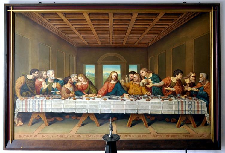 Keywords: Kloster Mehrerau Treppenhaus Collegiumskapelle Abendmahl.jpg Kloster Mehrerau Bregenz Vorarlberg; Treppenhaus zur Collegiumskapelle; Gemälde Das letzte Abendmahl nach Leonardo da Vinci 9984 own own photograph at 2011-09 Photo Andreas Praefcke Collegiumskapelle Mehrerau Photos by User AndreasPraefcke Copies of Last Supper by Leonardo da Vinci |