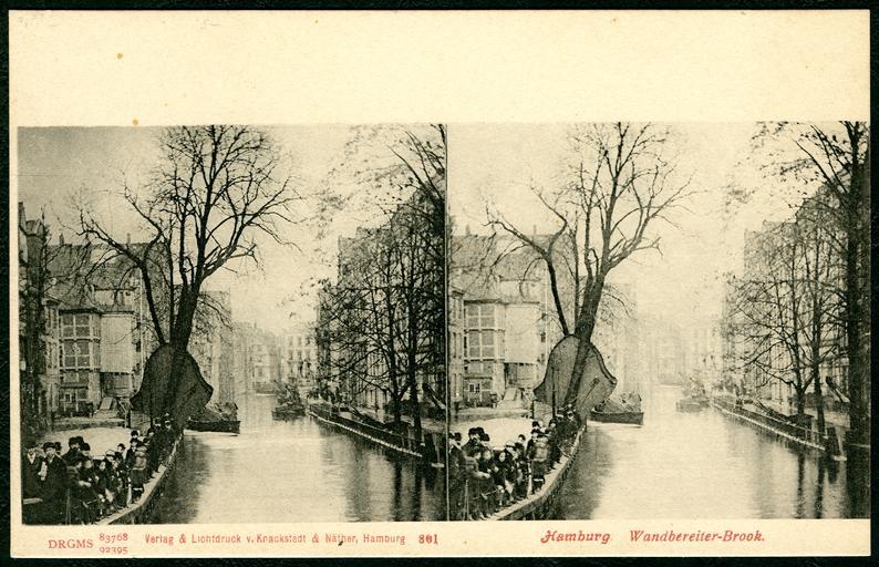 Keywords: Knackstedt & Näther Stereoskopie 0801 Deutschland, Hamburg, Wandbereiter-Brook, Bildseite der Postkarte um 1900, DRGMs 83768 und 92395.jpg Stereoskopie der Firma Knackstedt Näther mit der fortlaufenden Nummer 801 hier mit einem Blick durch den Wandbereiter-Brook mit einem Schiff und zahlreichen interessierten Zuschauern Das auf Lichtdruck spezialisierte hamburger Unternehmen auch K N hatte für ihre stereographischen Ansichtskarten die DRGM-Nummern 83768 und 92395 eintragen lassen Diese Karte wurde dankenswerterweise von Ilse Paul zur Verfügung gestellt um sie als Digitalisat über Wikimedia Commons nachhaltig allen Menschen zur Verfügung zu stellen Scan vom Original Bernd Schwabe in Hannover mit Dank an Ilse Paul ~ 1900 unknown photographer; his work published by Knackstedt Näther <gallery> File Knackstedt Näther Stereoskopie 0801 Deutschland Hamburg Wandbereiter-Brook Adressseite der Postkarte ungeteilte Rückseite jpg Ungeteilte Rückseite der als Stereoskopie Nr 801 vertriebenen Postkarte Ansichtskarte </gallery> PD-old Documents by Ilse Paul Knackstedt Näther stereo cards Postcards of Hamburg Stereo cards of Hamburg Wandbereiter-Brook People of Hamburg Ships in Hamburg |