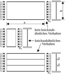 Keywords: Knickstabverhalten.svg de knickstabähnliches Verhalten zum Thema Plattenbeulen 2016-08-21 own Simon Pie other versions cc-zero Uncategorized 2016 August 21