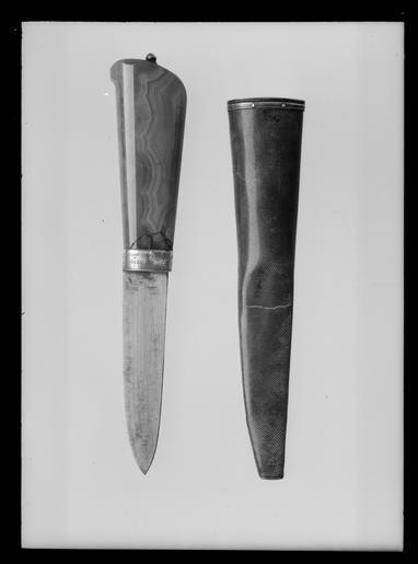 | Keywords: Kniv , Sverige 1758 - Livrustkammaren - 78618.tif Skaft av rosa bandagat med spetsoval genomskärning tången upptill fästad med oval platta och nitknapp av silver Nedtill på fästet ett 10 mm brett ringformigt beslag av silver på detta graverad text Om du dig Skiär Så Skyl eij mig ty Jag är blind och Ser eij dig anno 1758 <br/><br/>Blad kort brett eneggat på ena sidan inslaget stämpel BB under halvmåne original caption 1758 steel b2 - blankvapen - klinga material stål - silver b1 - blankvapen - fäste material silver size mm 207 size mm 38 size mm 102 blad size mm 22 blad g 140 LRK B B under liggande halvmåne FB anv b2 - blankvapen - klinga; anonym klingsmed Om Du dig Skiär Så Skyl eij mig ty Jag är blind och Ser eij anv b4 - blankvapen - fästdekor; slaktnr 10311 B B under liggande halvmåne FB anv b2 - blankvapen - klinga; anonym klingsmed Om Du dig Skiär Så Skyl eij mig ty Jag är blind och Ser eij anv b4 - blankvapen - fästdekor; slaktnr 10311 place of origin original filename LN_B12859_015739 41485 inventory number LRK 4926 78618 CC0 Kniv Sverige 1758 - Livrustkammaren - 78618-negative tif <gallery caption Different images of same object > File Kniv Sverige 1758 - Livrustkammaren - 1573 tif </gallery> Knife images from Livrustkammaren Media contributed by LSH unmatched material Media contributed by LSH dim-with multiple size templates Dagger images from Livrustkammaren Media contributed by LSH 2013-10 |