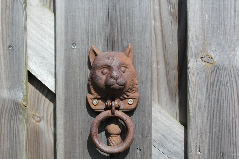 Keywords: knock gate cat old wood decoration doorknob home ornament