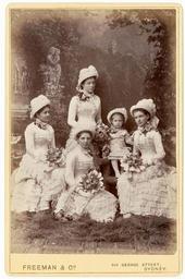 Keywords: st mark's church, darling point stmarkschurchdarlingpoint wedding bridesmaids five women girls gowns hats bouquets 1880s 1882 fashion whitedress sydney photo border outdoor Format: Cabinet photograph Find more detailed information about this photographic collection: acms.sl.nsw.gov.au/item/itemDetailPaged.aspx?itemID=442277 From the collection of the State Library of New South Wales : www.sl.nsw.gov.au/ Format: Cabinet photograph Find more detailed information about this photographic collection: acms.sl.nsw.gov.au/item/itemDetailPaged.aspx?itemID=442277 From the collection of the State Library of New South Wales : www.sl.nsw.gov.au/ |