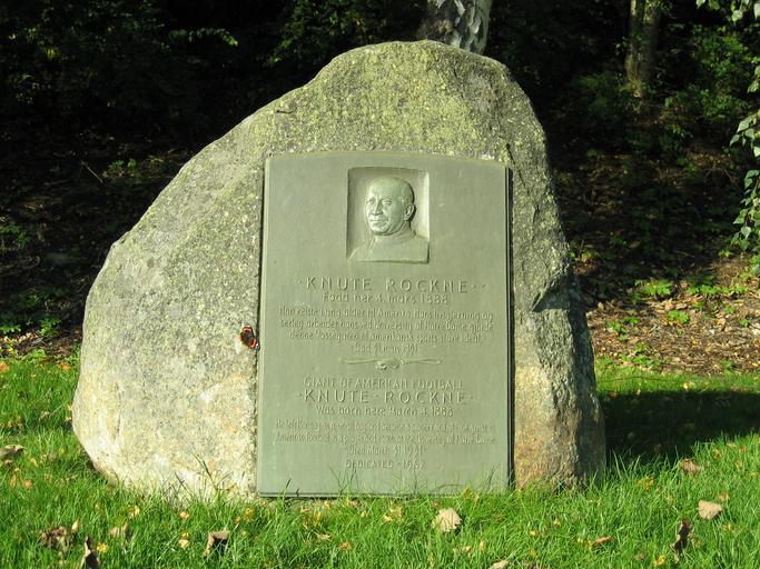 Keywords: Knute Rockne01.JPEG Knute Rockne Memorial at his birthplace Voss Norway Photo taken by PerPlex Monuments and memorials in Hordaland Plaques in Norway Sports in art American football in Norway 2005-10-07 own assumed PerPlex Knute Rockne