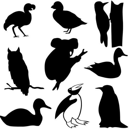 Keywords: koala bird icon flock black graphic pattern isolated wings white animals element drawing decorative design