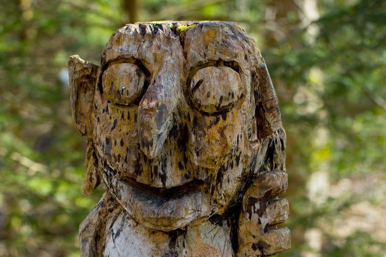 Keywords: kobold fig face look holzfigur carving forest wood carve wood carving art work profile portrait view nose eyes laugh smile trees