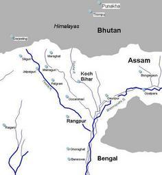 Keywords: Koch Bihar Sketch Map.jpg en Sketch map of Koch Bihar and surroundings to illustrate article on the history of the princely state own Aymatth2 2008-10-22 Maps of Assam Cooch Behar Maps of rivers of India Maps of the history of West Bengal