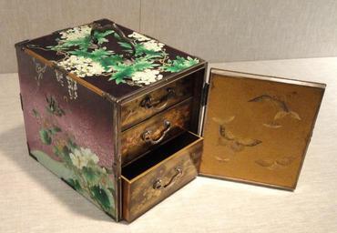 Keywords: Kodansu Small Chest, late 19th century, Japan, porcelain enamel on silver, lacquer, and engraved silver - Art Institute of Chicago - DSC00247.JPG Exhibit in the Art Institute of Chicago Chicago Illinois USA This artwork is in the public domain because the artist died more than 70 years ago Photography was permitted in the museum without restriction Daderot 2012-10-10 16 32 46 Daderot cc0 cc0 Japanese art in the Art Institute of Chicago Collections of the Art Institute of Chicago Enamels of Japan Metalwork of the Meiji period |