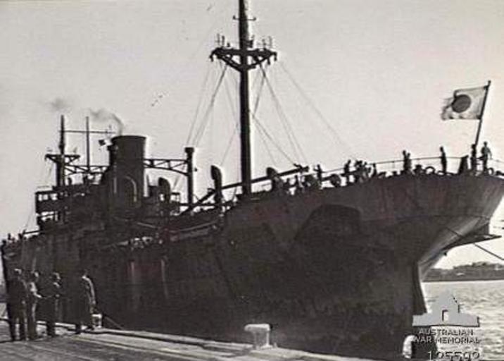 Keywords: Kōei Maru stern.jpg ja 高栄丸 :1933年 水 1934年竣工の日 の貨物船 6774総トン 第二次世界大戦では特設敷設艦として使用 写 は戦後の復員輸 でメル ルンを訪れたときに撮影 en MV Kōei Maru Japanese cargo ship launched in 1933 completed in 1934 6774grt Used as an Auxiliary Mine Layer by IJN in WW2 She arrived at Melbourne for the purpose of repatriating interned POW and civilians 1946-02-21 125592 SSGT BICKHAM Custom license marker 2012 07 28 PD-Australia Uploaded with UploadWizard Kōei Maru ship 1934 Black and white photographs |