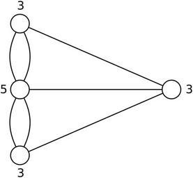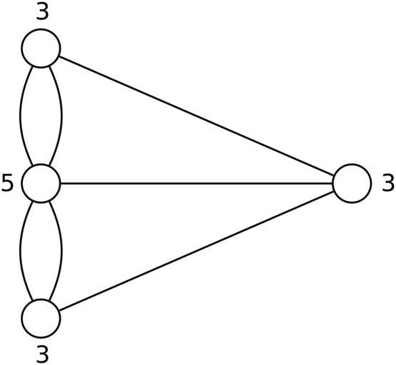 Keywords: Koenigsberger bruecken graph.svg en Graph for the Seven Bridges of Königsberg replaces jpg 2012-06-19 own Totalt cc-zero Uploaded with UploadWizard Images with LaTeX source code Seven Bridges of Königsberg Code Erstellt mit PGF/Tikz und pdflatex In svg konvertiert in Inkscape <source lang latex > \documentclass10pt scrartcl \usepackage tikz \usetikzlibrary positioning \begin document \begin tikzpicture node distance 2cm bend angle 25 thick main node/ style circle draw inner sep 0 2cm \nodemain node label above 3 0 ; \nodemain node label left 5 1 below of 0 ; \nodemain node label below 3 2 below of 1 ; \nodemain node label right 3 3 right 4cm of 1 ; \draw 0 to bend left 1 ; \draw 1 to bend left 0 ; \draw 1 to bend left 2 ; \draw 2 to bend left 1 ; \draw 0 to 3 ; \draw 2 to 3 ; \draw 1 to 3 ; \end tikzpicture \end document </source>