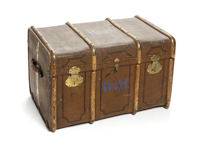 | Keywords: Koffert - Hallwylska museet - 108435.tif LSH artwork sv KOFFERT med två lås och tre nycklar <br/>Av trä och pappmassa klädd med tyg målad i brungult beslag av mässing Rektangulär med rundade sidokanter Locket gående utanpå framsidan och kortsidorna På vardera kortsidan ett brunt läderhandtag Ovanpå locket på framsidan samt på vardera kortsidan i blått initialerna W v H Beslag På vardera bandet över hörnen en slät plåt samt på locket på vardera främre nedre hörnet ett pressat beslag med konturerad kant Lås med hasp och utanpå liggande däckel samt i mitten ett säkerhetsknäppe Inuti kofferten två lösa fack samt i botten ett hopfällbart dylikt Nycklar original Av järn platta med rund ögla Vikt 18 7 kg Höjd 58 cm; längd 95 cm; bredd 58 cm Nycklar längd 4 9 cm; bredd 2 1 cm Inköpt av Walther von Hallwyl hos K M Lundberg kungl hovleveratör Stockholm Använd av Walther och Wilhelmina von Hallwyl samt fröken Ida Uhse under deras resa genom Egypten Palestina Mindre Asien och Turkiet samt åter över Schweiz och Tyskland original caption Koffert<br/> Nyckelord Förvaring Koffert Resa Föremålsbild Väska wood kg 18 7 HWY Resebilder 2014 Webben place of origin original filename hm_dig22107 19229 inventory number HWY XVII A g 10 108435 CC-BY-SA Jens Mohr Bags Travel Storage Travel stuff Luggage Jens Mohr Media contributed by LSH unmatched material Media contributed by LSH dim-with multiple size templates Media contributed by LSH unmatched place Media contributed by LSH unmatched keyword Media contributed by LSH 2016-05 |