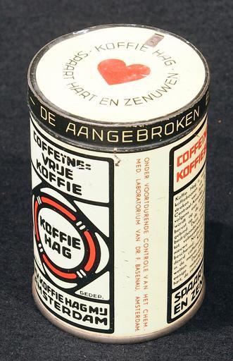 Keywords: Koffie Hag bus, foto 2.JPG Very old packaging of a Dutch product that is not produced and not sold any more Photographed at a collector of Droste For info see http //www tincollectors nl/ tincollectors nl or email info tincollectors nl own 2014-04-11 09 23 51 Alf van Beem CC-Zero Trademarked Coffee tins |