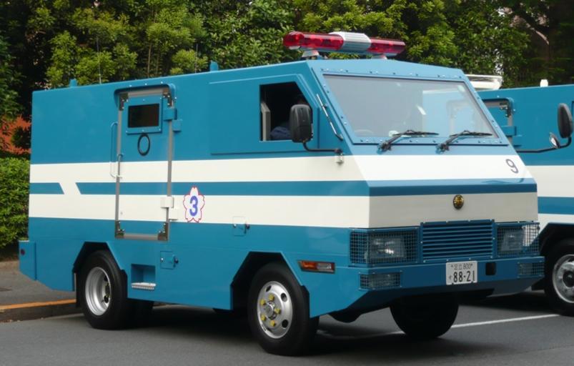 | Keywords: Kogata-tokugatakeibi.jpg ja 小型特型警備車 own Photo by me Ypy31 2009-05-21 Fuso Canter 7th generation Trucks of the Tokyo Metropolitan Police Department Blue and white road vehicles Vehicles with red emergency lightbars Striped land vehicles Armoured vans blue and white police vehicles |