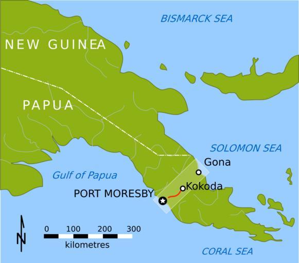 Keywords: Kokoda trail location.svg en Map of New Guinea territories 1942 showing location of Kokoda Trail scale in km own SpoolWhippets 2010-03-11 Png_potts png Maps of Papua New Guinea Kokoda Trail SVG maps Maps of World War II in the Pacific