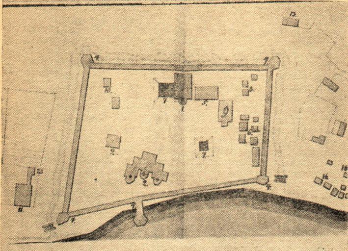 | Keywords: Kola ostrog 1801.jpg en Plan of the Kola ostrog 1801 1 - Annunciation Church; 2 - Resurrection Cathedral with a belfry ru План Кольского ост ога ф агмент плана го ода Колы 1801 года 1 Благовещенская каменная вновь ст оящаяся це ковь; 2 де евянный Воск есенский собо с колокольнею; 4 го одовая к епость с башнями; 5 дом в коем помещены п исутственные места; 6 п овиантские магазейны; 7 по оховые пог еба; 8 а тилле ийский цейхгауз; 9 винный подвал; 10 тю емный ост ог; 11 дом го одничего; 13 отный дом; 16 питейные дома; 18 то говые лавки http //www kolamap ru/library/1960_ushakov htm Author 1801 Kola stockade PD-old-100 |