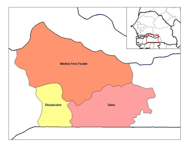 | Keywords: Kolda arrondissements.png Map of the arrondissements of Kolda department in Senegal Carte des arrondissements du département de Kolda au Sénégal Own 2007-01-02 Rarelibra using MapInfo Professional v8 5 and various mapping resources Locator maps of departements of Senegal |