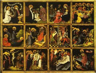 Keywords: Kölner Maler um 1450-1460 001.jpg Artwork Anonymous Cologne Andachtsbild mit zwölf Szenen aus dem Leben Christi ~ 1450-1460 LangSwitch Canvas Leinwand Doek cm 75 2 97 Wallraf-Richartz-Museum Cologne Provenance by 1988-09 Private collection Sweden Zweden ProvenanceEvent 1986-09 loan Wallraf-Richartz-Museum Cologne ProvenanceEvent 1988-09 purchase Wallraf-Richartz-Museum Cologne Postcard WRM 3606 Other versions PD-old-100 ImageNote 1 170 101 77 176 1561 1187 2 LangSwitch Inschrift Inscription Inscriptie ave gratia plena dns tecum ImageNoteEnd 1 ImageNote 2 113 36 249 127 1561 1187 2 LangSwitch Inscription Inschrift Inscriptie Ecce ancilla dni fiat michi scdm vbu tuu ImageNoteEnd 2 Cycles of the Life of Christ in art 15th-century paintings of New Testament Paintings in the Wallraf-Richartz-Museum Anonymous 15th-century paintings in Germany Angels with banners 17th-century oil on canvas paintings in Germany |
