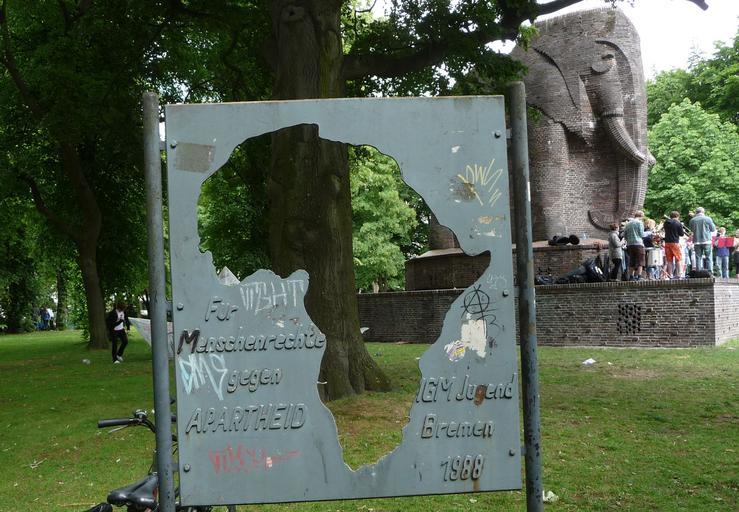 Keywords: Kolonialelefant Bremen 03.jpg de Antikolonialdenkmal Bremen own Immanuel Giel 2009-05 other fields 1 inscription inscription Für<br />Menschenrechte<br />gegen<br /><big>APARTHEID</big><br /><br /><big>IGM</big> Jugend<br />Bremen<br /><big>1988</big> de Antikolonialdenkmal Bremen |