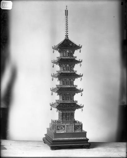 Keywords: Komai Workshop - Okimono of a Pagoda with Famous Scenes - Walters 571567.jpg Here is a five-storied pagoda which in general form is very much like the famous 7th-century one at Horyu-ji near Nara underneath which relics of the Buddha were originally deposited But it is a pagoda transformed hardly a straightforward model On each story are doors and drawers; the pagoda has turned into a cabinet Images transform every surface into something it never was and never could be Steel gold silver and black lacquer have been combined to make vibrant pictures of a sort that might be seen on the painted sliding doors of large interior rooms On each story there are views of such attractions as Mt Fuji the Itsukushima Shrine and the Kiyomizu Temple while the roofs bear images that suggest the skies above butterflies phoenixes geese plovers herons and peacocks ca 1915 Taisho steel silver copper gold and enamel cm 111 1 accession number 57 1567 9499 The Panama-Pacific International Exposition San Francisco 1915 Henry Walters city Baltimore Walters Art Museum Henry Walters Acquired by Henry Walters 1915 Transcription Nihon kuni Kyoto ju Komai sei; Translation Made by Komai Kyoto Japan place of origin Kyoto Japan Walters Art Museum license Art of Japan in the Walters Art Museum Media from the Walters Art Museum no creator template Media contributed by the Walters Art Museum needs category review |