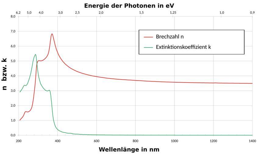 | Keywords: Komplexe Brechzahl von Silicium (300 K).svg en Wavelength dependet complex refractive index N n + ik of crystalline silicon in the NIR VIS and UV region at 300 K Data based on Palik Edward D ; Ghosh Gorachand Handbook of optical constants of solids San Diego Academic Press 1998 “ ISBN 0125444206 de Darstellung der wellenlängenabhängigen komplexen Brechzahl N n + ik von Silicium im NIR-VIS-UV-Bereich bei 300 K Daten basieren auf den Angaben in Palik Edward D ; Ghosh Gorachand Handbook of optical constants of solids San Diego Academic Press 1998 “ ISBN 0125444206 own Cepheiden 2007-06-19 file Refractive_index_of_silicon_ 300_K svg Silicon spectra Refractive index plots |