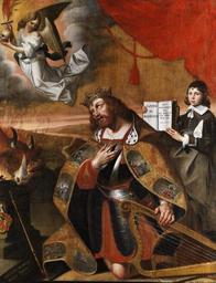 Keywords: König David vor einem Opferaltar kniend.jpg Maler des 17 Jahrhunderts in Art von Jan de Bray datiert 1658 König David vor einem Opferaltar kniend Öl auf Leinwand 106 x 81 cm Buch mit Auszug aus dem Johannes-Evangelium Kapitel 6 Vers 58 Lapsis in remedium An der Altarstufe die Stifterinschrift Wallranus de Beche/ Rethor punebat King David kneeling in front of a sacrificial altar 1658 Oil on canvas cm 106 81 unknown http //www hampel-auctions com/ other versions PD-old-100 17th-century unidentified painters 17th-century paintings location missing King David playing harp 1658 oil on canvas paintings 17th-century oil paintings of men at full length 17th-century paintings of David Ermine clothing in art Images from Hampel Auctions Paintings of men wearing crowns |