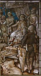 Keywords: Konrad von Zaehringen.jpg Konrad of Zaehringen bestowing the city rights to Freiburg Konrad zu Zähringen verleiht Freiburg i Br das Stadtrecht Creator Fritz Geiges 1899 Braun- und Schwarzlotmalerei in Grisaille 115 x 62 7 cm Augustinermuseum derzeit Museum für Stadtgeschichte Freiburg im Breisgau Inv -Nr 1997/226 linker Teil eines 3teiligen Bildes photo James Steakley Other versions thumb left 200px PD-old-auto 1935 47 59 38 34 N 7 51 9 44 E scale 1563_type landmark_region DE History of Freiburg im Breisgau Conrad I Duke of Zähringen Fritz Geiges Wentzingerhaus Freiburg Stained glass windows in Freiburg im Breisgau |