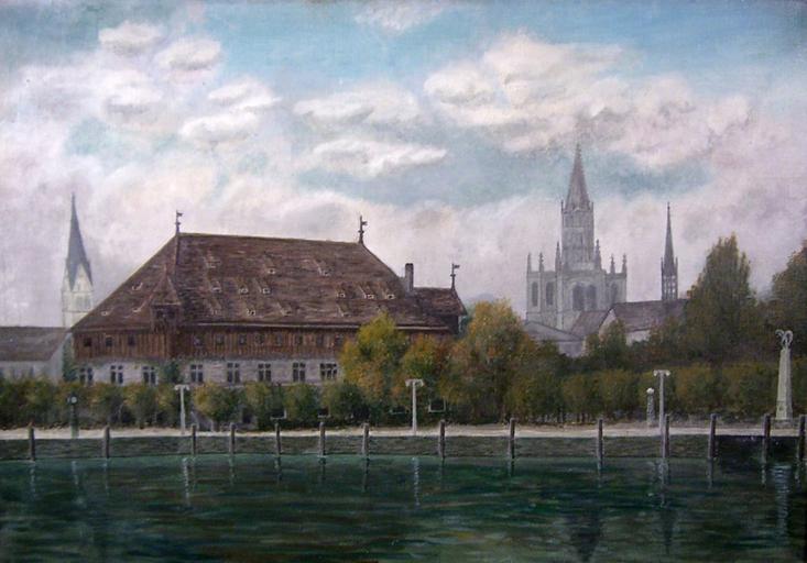 | Keywords: Konstanz Münster und Konzil Gemälde.jpg  Blick auf Münster und Konzilsgebäude in Konstanz vom See aus Öl auf Leinwand 55 5 x 80 cm http //www zeller de circa 1900 / early 20th century anonymous PD-old-70 Lake Constance in art Konzilgebäude Konstanz Exterior of Constance Minster Historic views of Konstanz Images from Auktionshaus Zeller |
