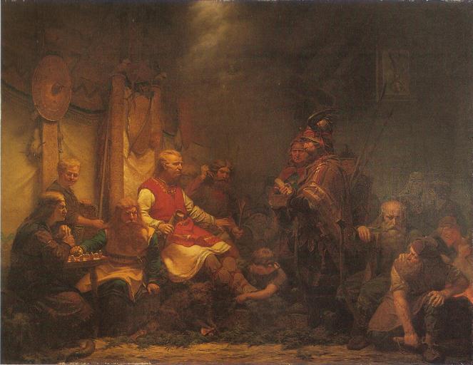 Keywords: Konung Ellas sändebud inför Ragnar Ladbroks söner (1857) av August Malmström.jpg Artwork title Konung Ellas sändebud inför Ragnar Lodbroks söner King Ella's messengers before Ragnar Lodbrok's sons creator August Malmström 1857 oil canvas cm 109 142 Norrköpings Konstmuseum source Public domain PD-old-100 Paintings from Sweden 1857 paintings Norrköpings Konstmuseum August Malmström |