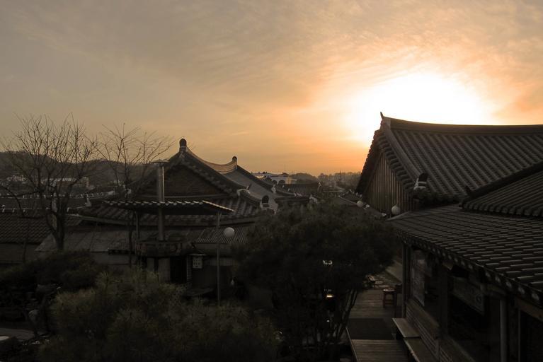 Keywords: korea houses sunset silhouettes architecture ancient autumn historical landmark sky