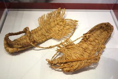 | Keywords: Korean jipsin, partially woven soles, 1981, rice straw - Bata Shoe Museum - DSC00385.JPG en Exhibit in the Bata Shoe Museum Toronto Ontario Canada The museum permitted photography without restriction 2013-07-04 11 01 45 own Daderot cc-zero Shoes in the Bata Shoe Museum Uploaded with UploadWizard Jipsin Rice straw |