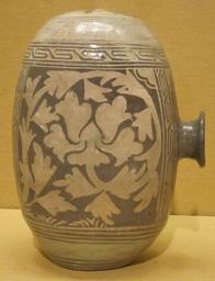 | Keywords: Korean punch'ong ware pear-shaped wine bottle, Choson dynasty, second half of 15th century, stoneware with glaze and white slip decoration, HAA.JPG en Korean punch'ong ware pear-shaped wine bottle Chosŏn Joseon dynasty second half of 15th century stoneware with glaze and white slip decoration Honolulu Academy of Arts own Hiart photo 2011 Cc-zero Buncheong ware in the Honolulu Museum of Art Wine bottles Slipware | ||||
