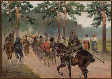 | Keywords: Kossak Ułani eksportujący jeńców na leśnej drodze.jpg Artwork 1927 oil on canvas Institution National Museum Warsaw object history exhibition history credit line accession number MP 3752 place of creation http //cyfrowe mnw art pl/dmuseion/docmetadata id 16889 show_nav true cyfrowe mnw art pl Custom license marker 2015 04 29 PD-old-auto-1923 1942 Uploaded with UploadWizard Paintings by Wojciech Kossak in the National Museum in Warsaw Polish-Soviet War | ||||