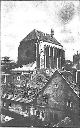 Keywords: Kostel Panny Marie Sněžné, 1930.jpg cs Pohled na kostel a konvent Panny Marie Sněžné v Praze z roku 1930 1930 František Klement Minařík OFM Pražští mučedníci Serafín Bratislava 1991 str 6 neznámý 1930 ; unknown 1930 legenda 1 kostel 2 schody nad klenbou kostela 3 kaple Panny Marie sv Michaela 4 tehdejší noviciát 5 konvent 6 nádvoří PD-Art Fourteen Prague Martyrs Church of Our Lady of the Snow Prague Uploaded with UploadWizard |