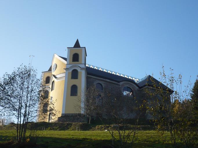 Keywords: Kostel v Neratove.JPG Kostel Nanebevzetí Panny Marie Neratov pohled ze silnice Church in Neratov Czech Republic own 2009-10-31 Czech Wikipedia user Marzper Church of the Assumption of the Virgin Mary Neratov