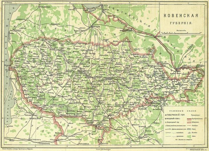 Keywords: Kovenskaya gubernia.jpg ru Ковенская губе ния en Kovno Governorate 1910-s Б окгауз Ф А овый энциклопедический слова ь / под общ ед К К А сеньева Т 22 Пет ог ад 191 URL http //dlib rsl ru/viewer/01004103493 page 36 Литог афия И Кадушина составил Д И Рихте PD-Art Uploaded with UploadWizard Maps of Kovno Governorate