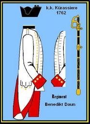 Keywords: KR Benedikt Daun 1762.PNG de Österreichisches Kürassier-Regiment žBenedikt Daun Aus L F Funcken - žL'Uniforme et les Armes des soldats de la guerre en dentelle II Castermann Tournai 1976 own Erwin Lindemann Austrian cavalry 1762